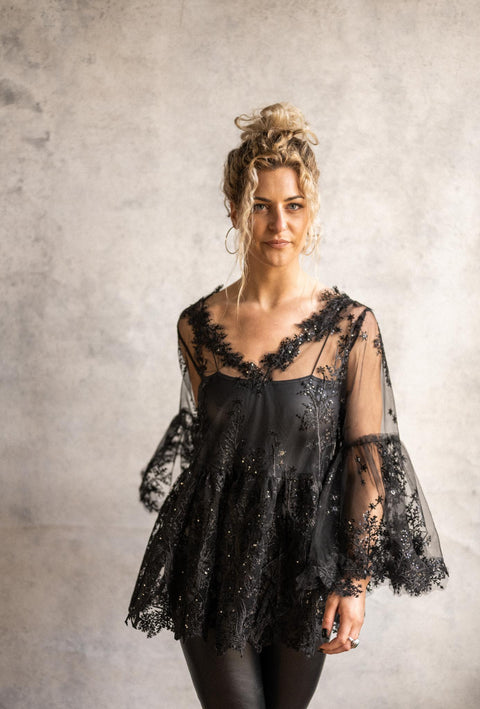 Few people have defined free-spirited boho fashion quite like Stevie Nicks. Her sense of style and fashion was a huge influence over two decades. Flowy fabrics and vintage materials, her style is cyclical, and this pattern will work well throughout the seasons in silk velvets, dobby, lace, viscose, lawn, crepe - just about anything drapery. I’ve made her here in a variety of fabrics, an embroidered tulle, an up-cycled crocheted table cloth, a hand-blocked Indian print and a fine cotton dobby.